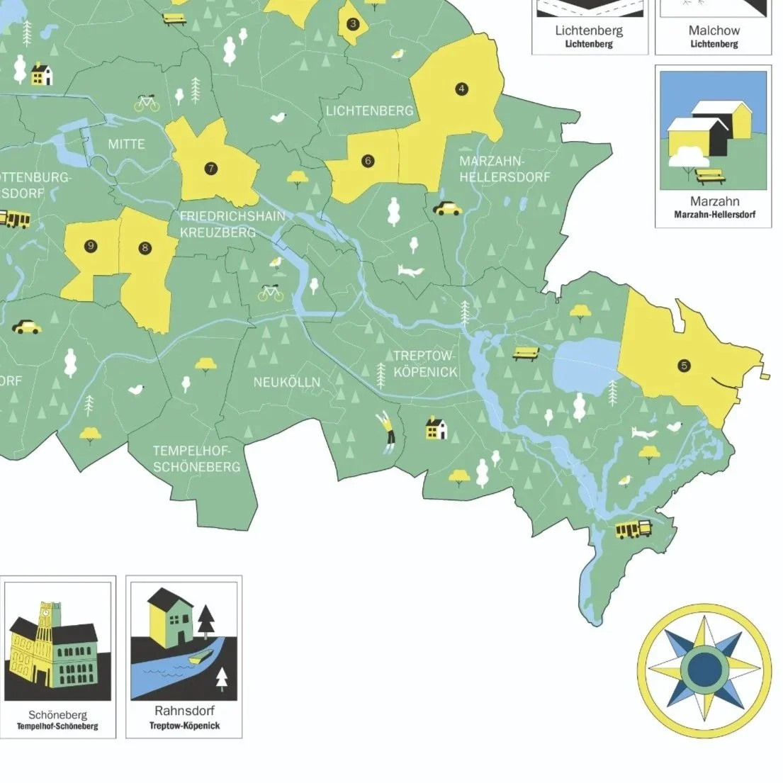 Information design and research on Berlin’s green areas, presented as a printed publication.